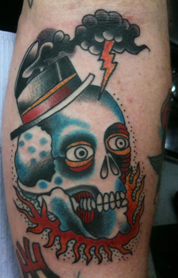 闪电击中骷髅纹身图案