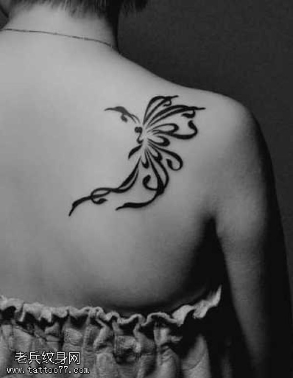 女生肩花纹身_15张女性双肩对称的肩花纹身图案作品图片