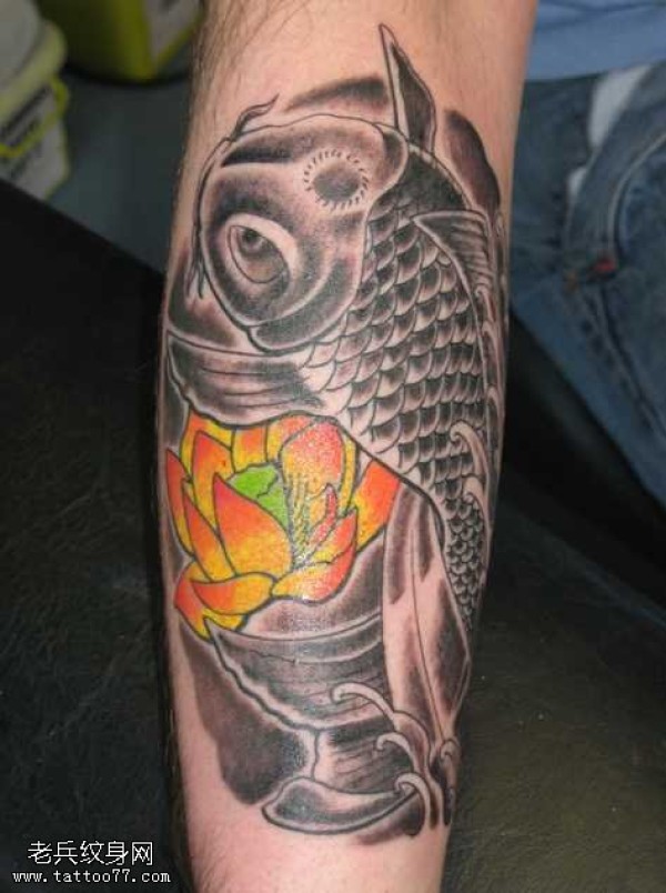 传统鲤鱼花小腿纹身_腿部纹身图案大全_纹身图吧