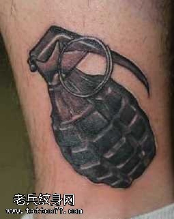 腿部另类的手雷纹身图案