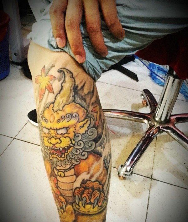 传统花腿纹身--18张传统风格的大花腿纹身图案作品