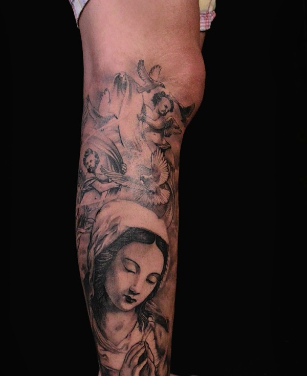 花腿纹身--一组大黑腿纹身图案作品欣赏
