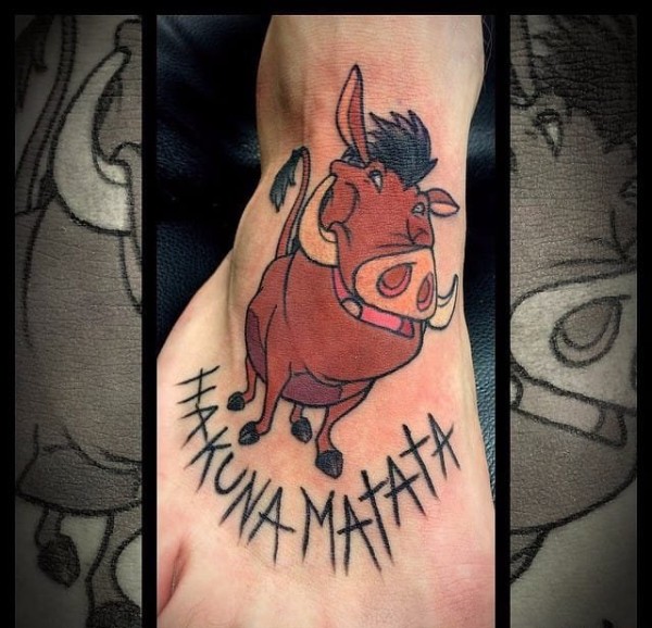大腿上的狮子王和野猪的纹身图案