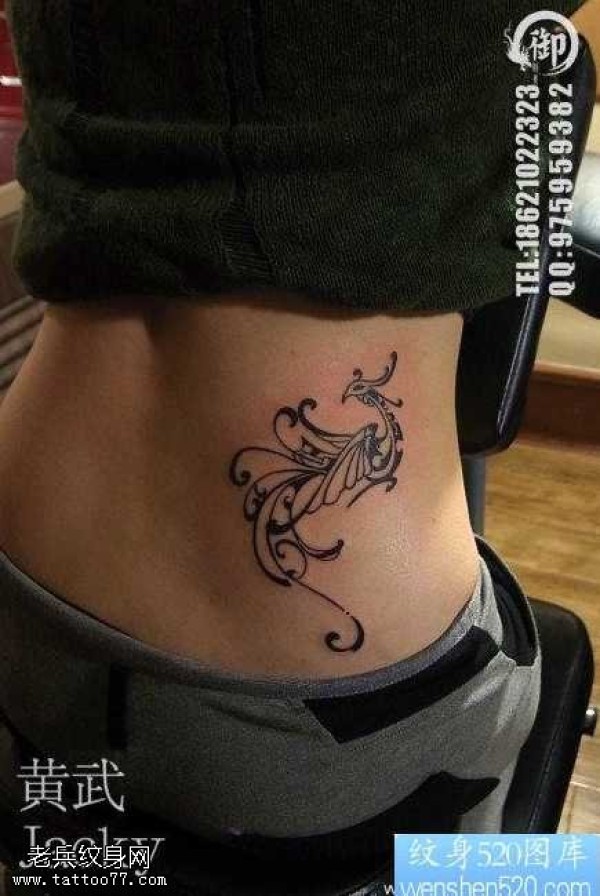 腰部潮流的图腾凤凰纹身图案