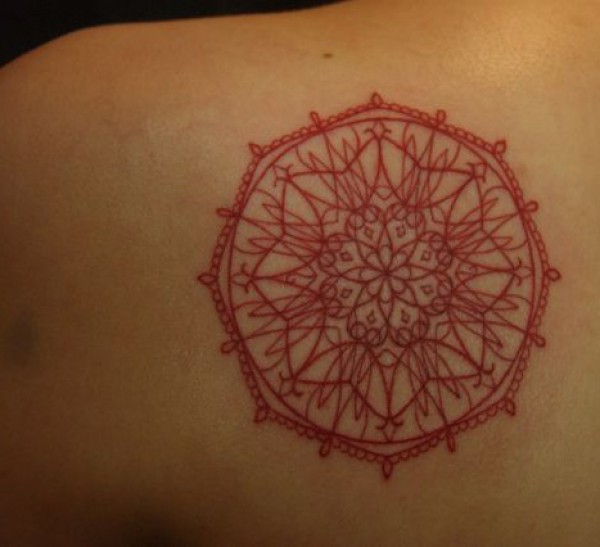 繁琐的红色线条纹身