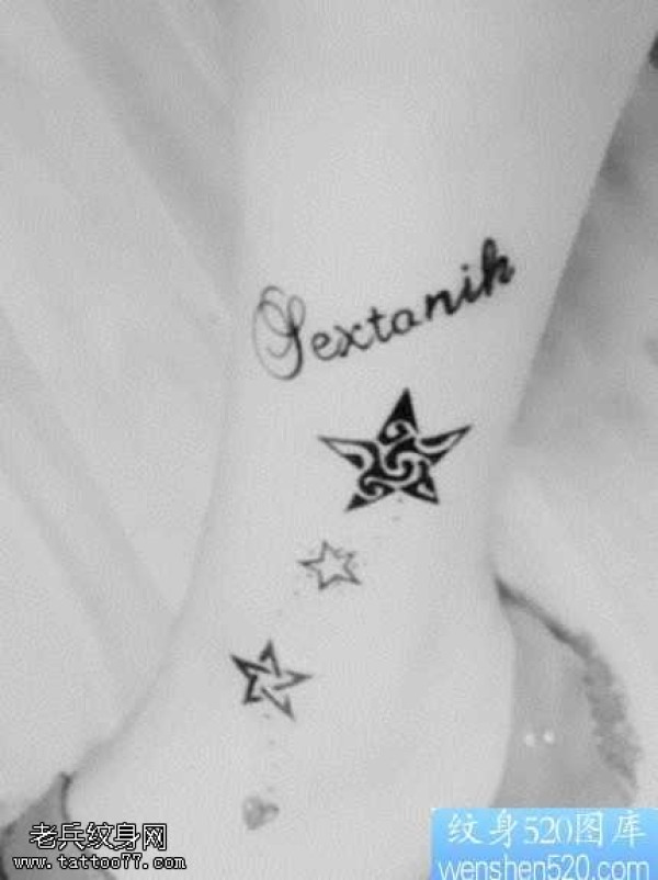 腿部好看时尚的五角星纹身图案