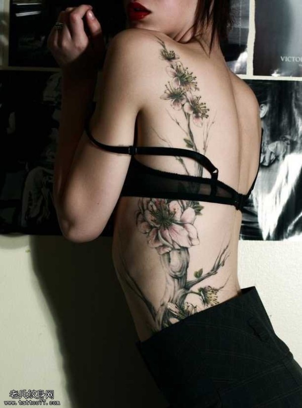 腰部树开花纹身图案