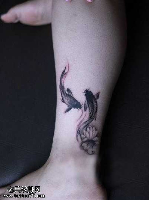 传统鲤鱼花小腿纹身_腿部纹身图案大全_纹身图吧