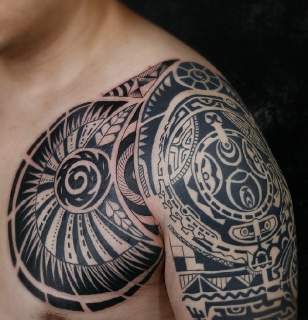 超级完美的霸气半甲图腾纹身刺青