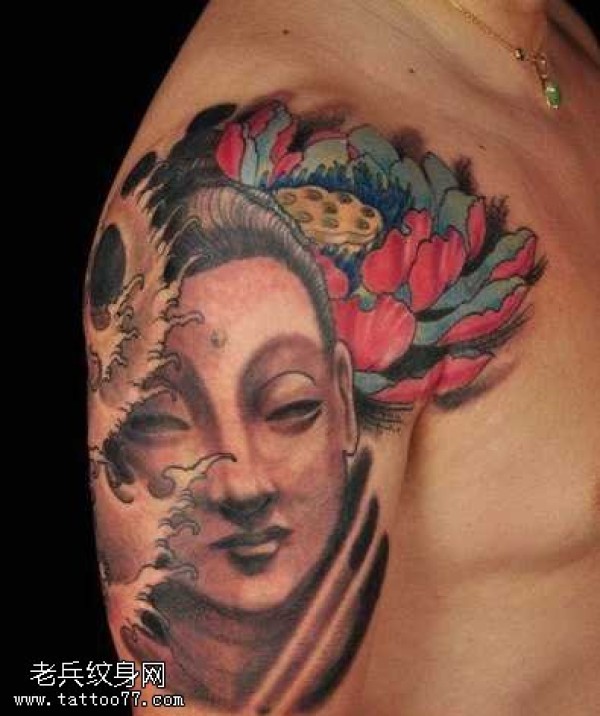 大臂彩色莲花佛纹身图案