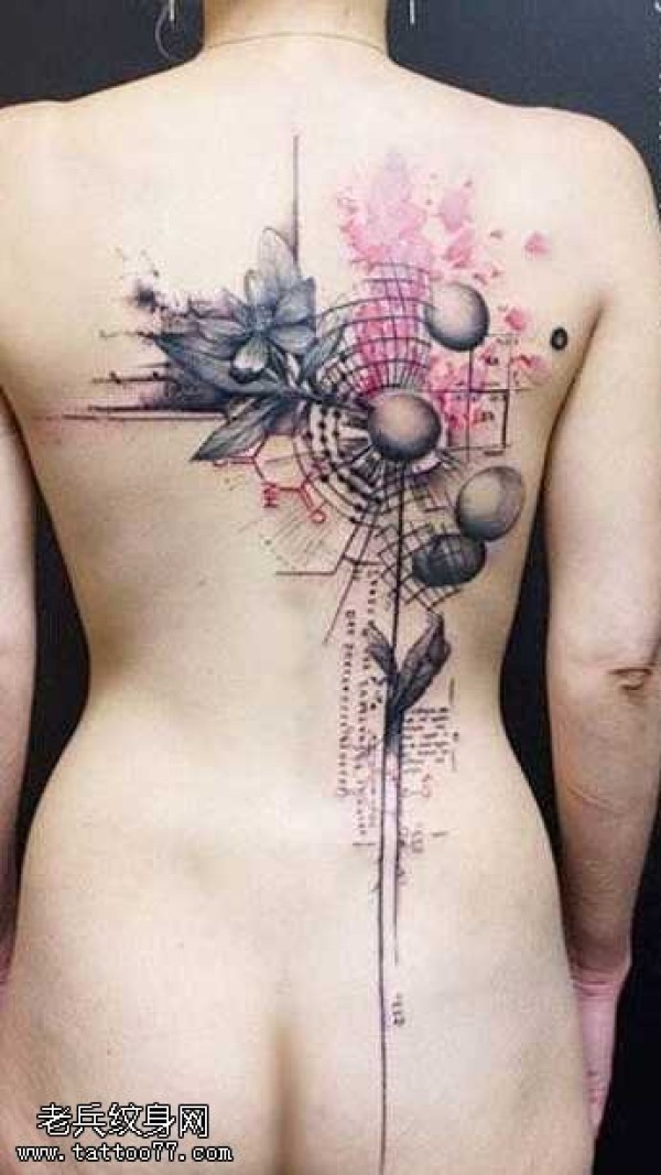 性感女生满背创意文身作品
