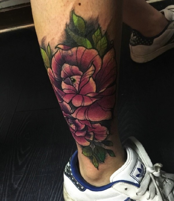 传统花腿纹身--18张传统风格的大花腿纹身图案作品