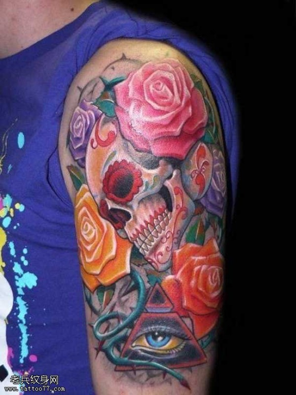 手臂一款彩色蘑菇纹身图案_臂部纹身图案大全_纹身图吧