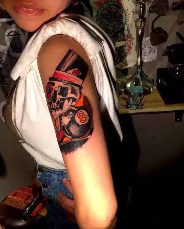 手臂个性的彩色骷髅骑士纹身图案