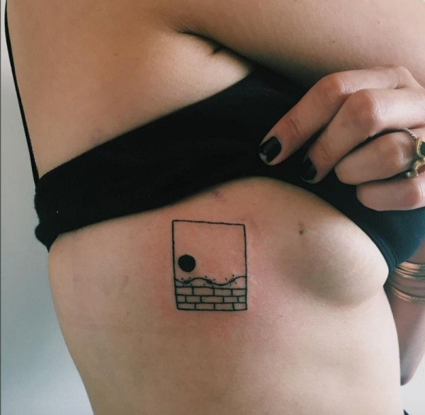 黑色线条组成一个拿个烟的女性纹身