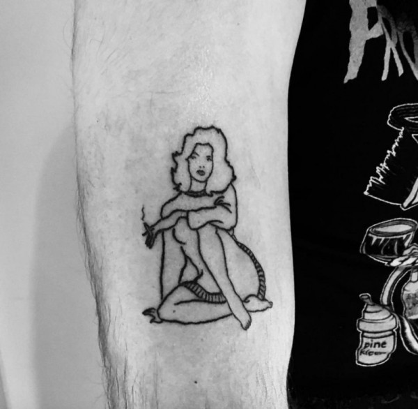 黑色线条组成一个拿个烟的女性纹身