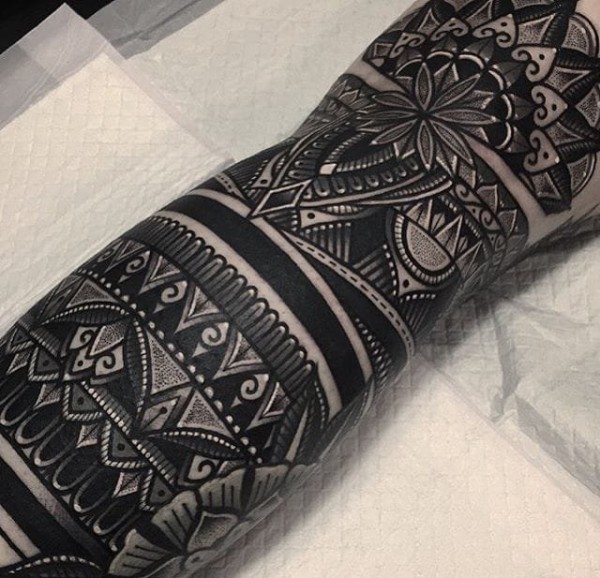 25款男性黑色手臂线条纹身点刺技巧半甲纹身图案