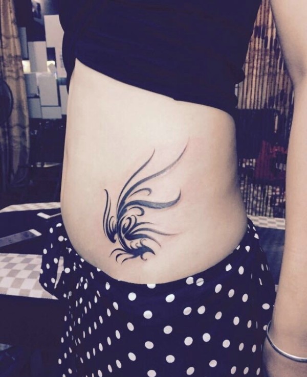 分享一款腰部时尚性感的蝶恋花纹身图案_腰部纹身图案大全_纹身图吧