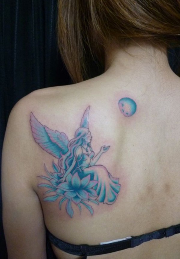 后肩唯美花藤英文图案图片_植物纹身图案大全_纹身图吧