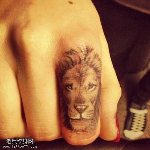 手指小狮子头像纹身图案