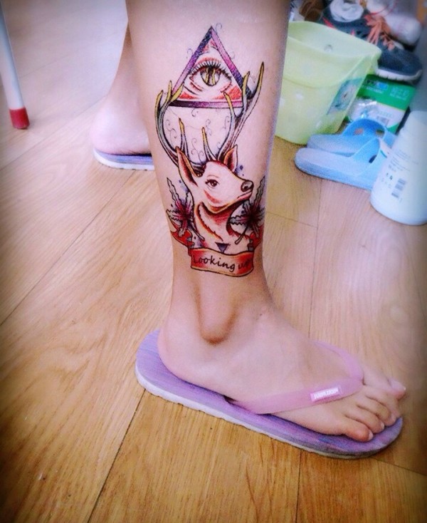 花腿纹身--一组大黑腿纹身图案作品欣赏