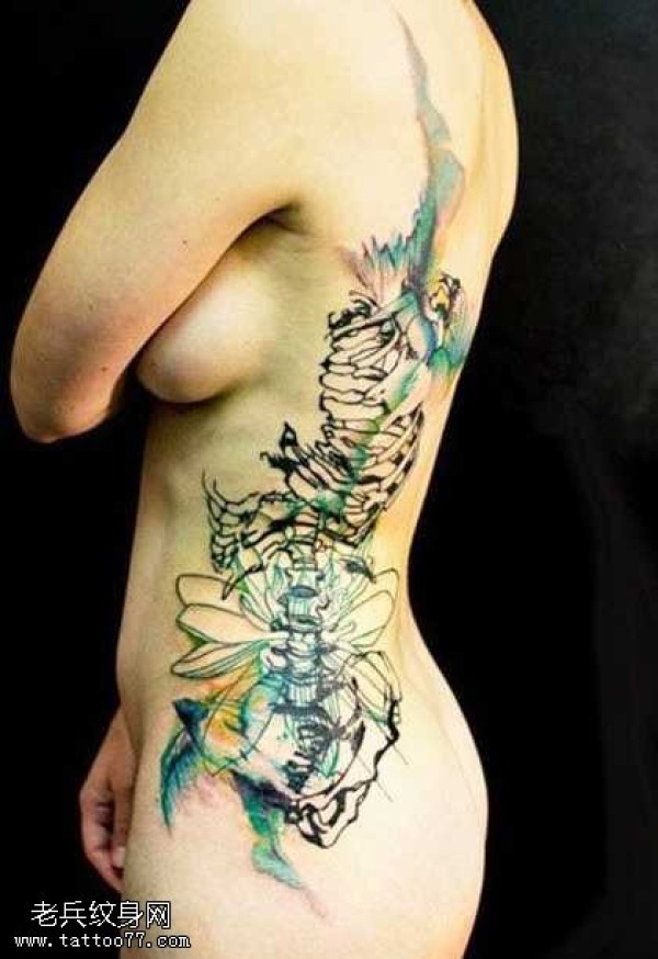 女性腰部莲花花纹刺青_腰部纹身图案大全_纹身图吧