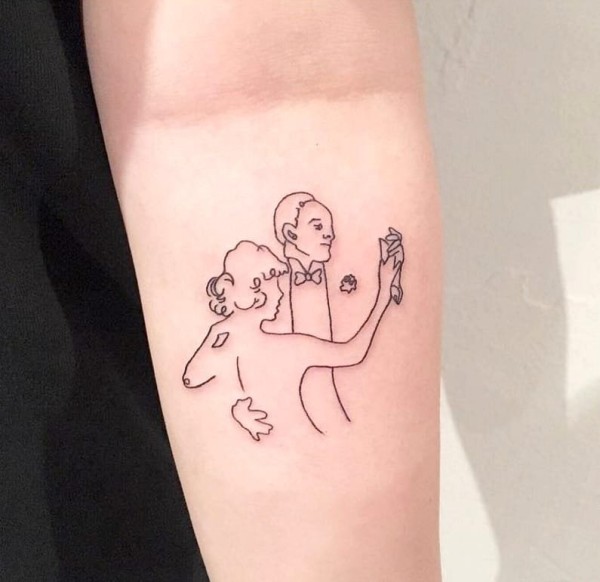 爱人的结婚照对应的线条人物纹身