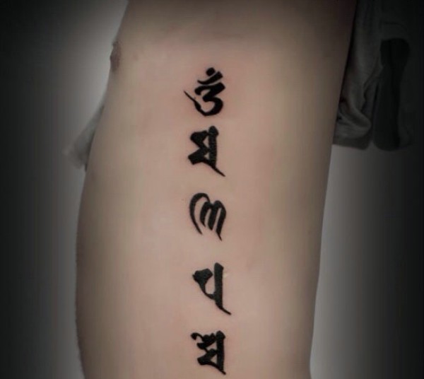 侧腰部简单单一的梵文纹身刺青