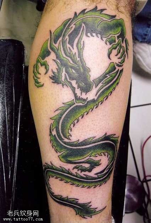 腿部绿龙纹身图案