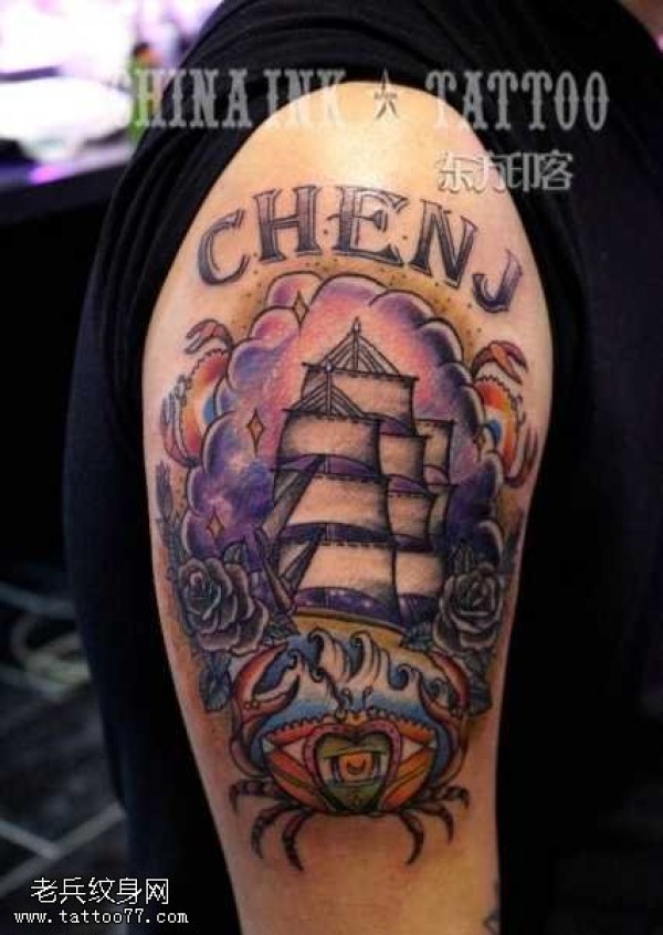 胳膊船纹身图案