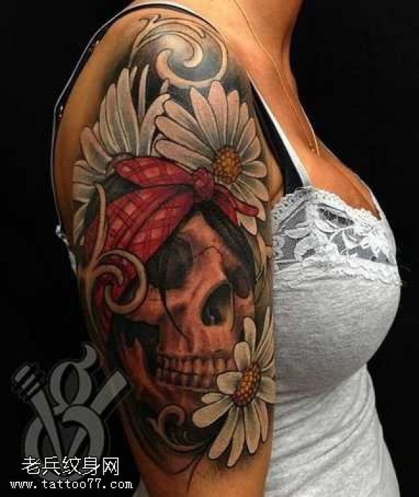 个性手臂悲伤的骷髅纹身图案图案图片_骷髅纹身图案大全_纹身图吧