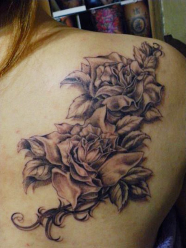 后肩唯美花藤英文图案图片_植物纹身图案大全_纹身图吧