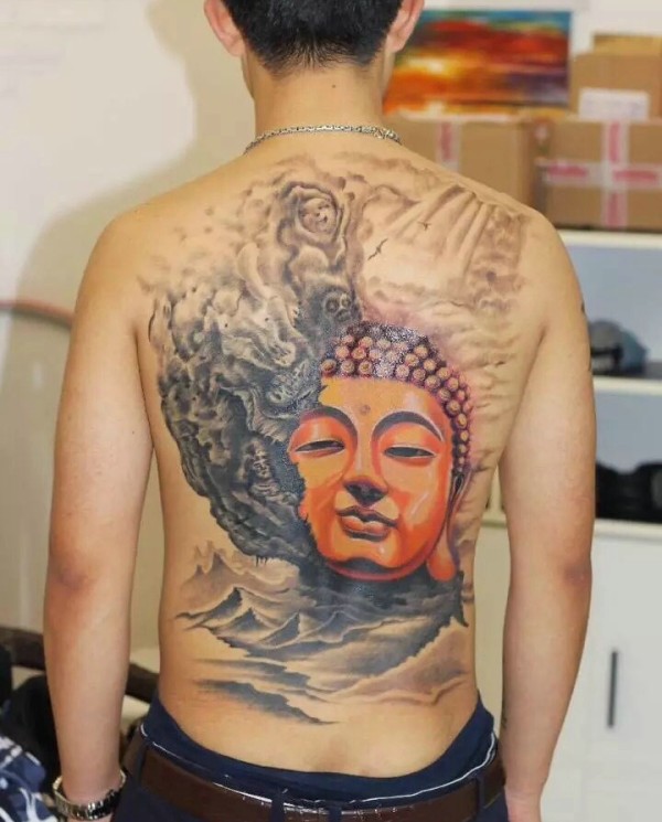 一款回头率爆表的满背金佛纹身图案