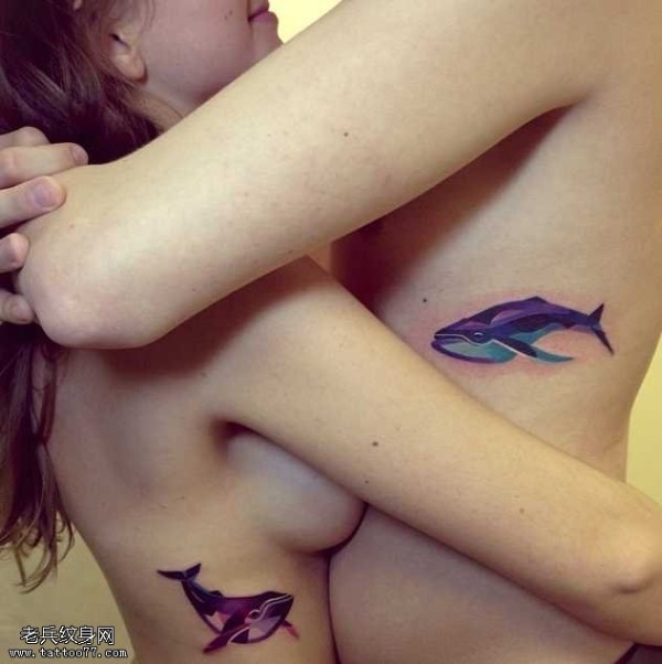 紫钻鲨鱼情侣纹身图案