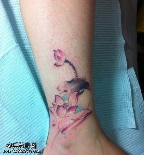 传统鲤鱼花小腿纹身_腿部纹身图案大全_纹身图吧