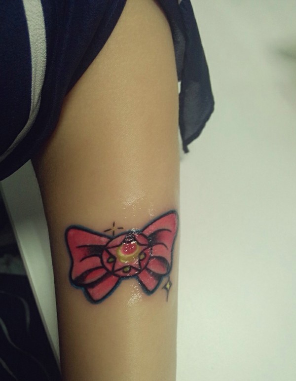 手臂外侧个性彩色小图腾纹身刺青