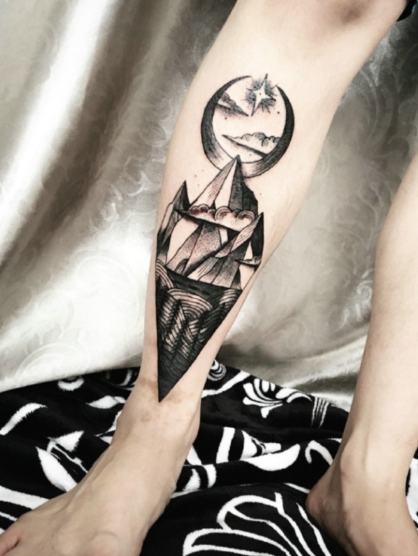花腿纹身--一组大黑腿纹身图案作品欣赏