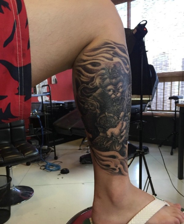 花腿纹身--一组大黑腿纹身图案作品欣赏