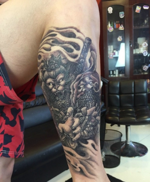 传统花腿纹身--18张传统风格的大花腿纹身图案作品