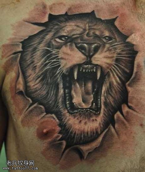 胸部狮子纹身图案