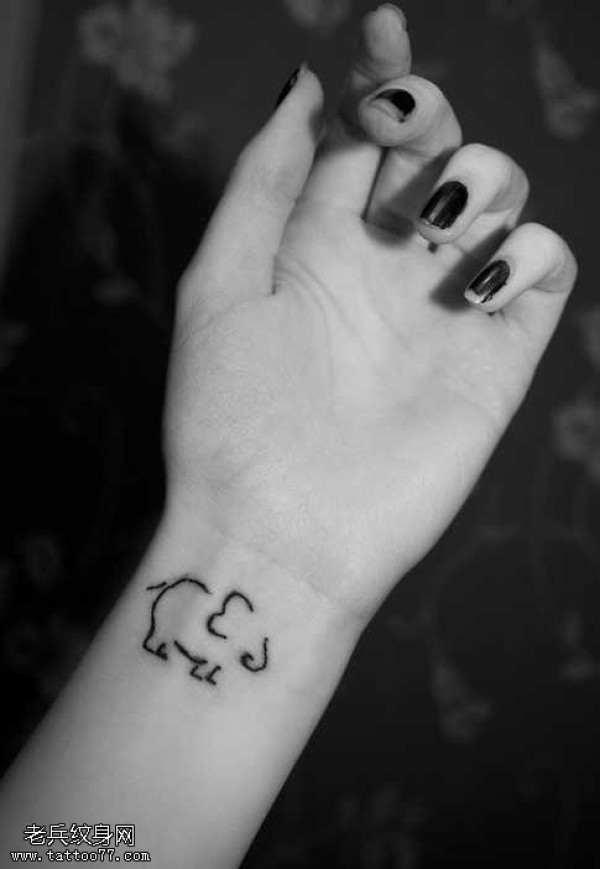 手腕可爱的小象图腾纹身图案