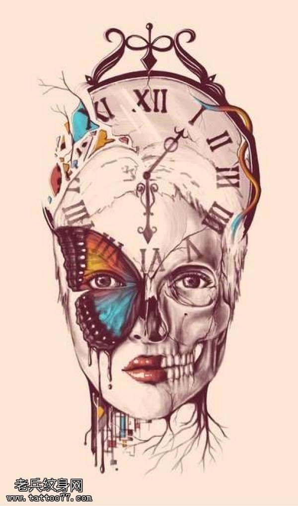 手稿闹钟人物纹身图案