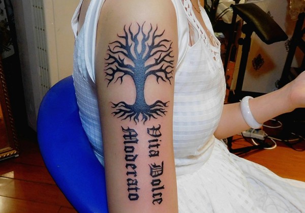 后肩唯美花藤英文图案图片_植物纹身图案大全_纹身图吧