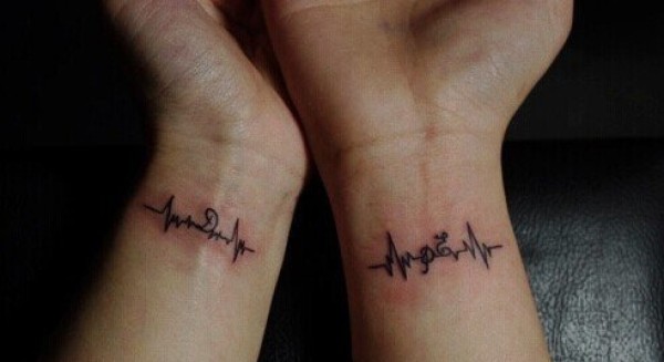 情侣手腕处的心率纹身图片