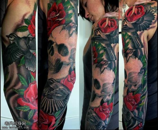 胳膊乌鸦骷髅纹身图案