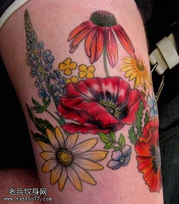 传统花腿纹身--18张传统风格的大花腿纹身图案作品