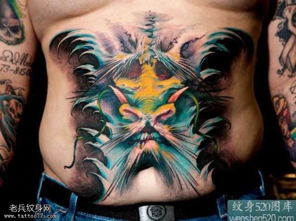 腹部霸气的彩色纹身图案