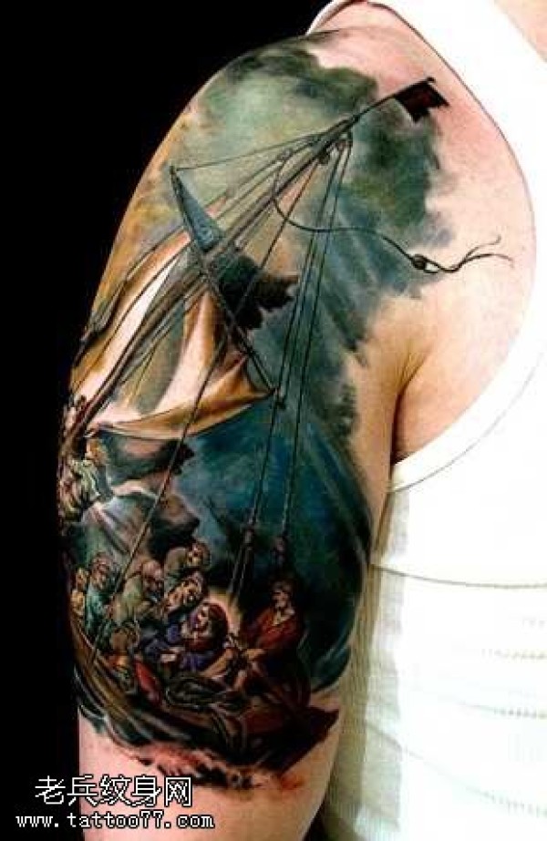 胳膊船纹身图案
