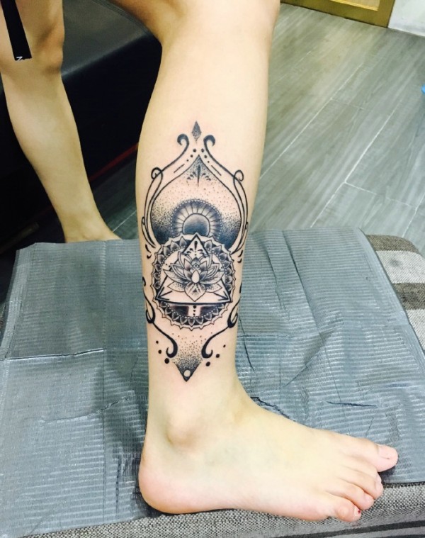 花腿纹身--一组大黑腿纹身图案作品欣赏