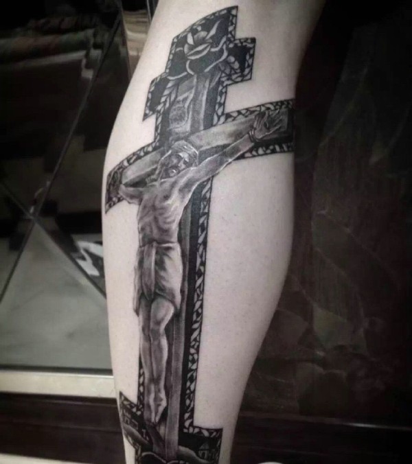 花腿纹身--一组大黑腿纹身图案作品欣赏